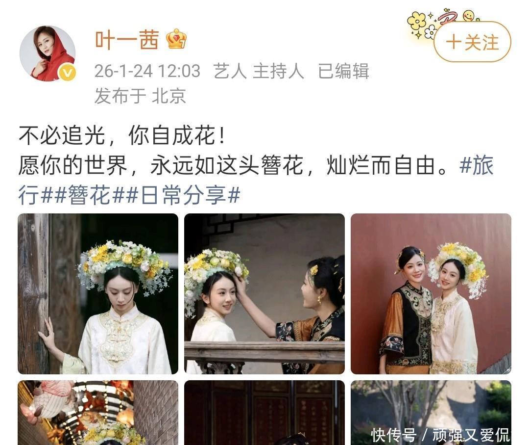 簪花体验是在大理古城一家老匠人开的铺子里做的。店主是位六十七岁的白族阿婆,手稳得像没抖过,一边给森碟插花一边念叨:“花要斜着别,才不会压垮头发;人要斜着活,才不会被日子压弯腰。”叶一茜在边上听着,忽然就笑了。她没发通稿,没打广告,就随手拍了九宫格,配文只有十个字:“不必追光,你自成花。”底下带了个寒假带娃记,还悄悄加了大理慢游。没明说,但谁都懂——这趟不是打卡,是母女俩真正松了口气的喘息。